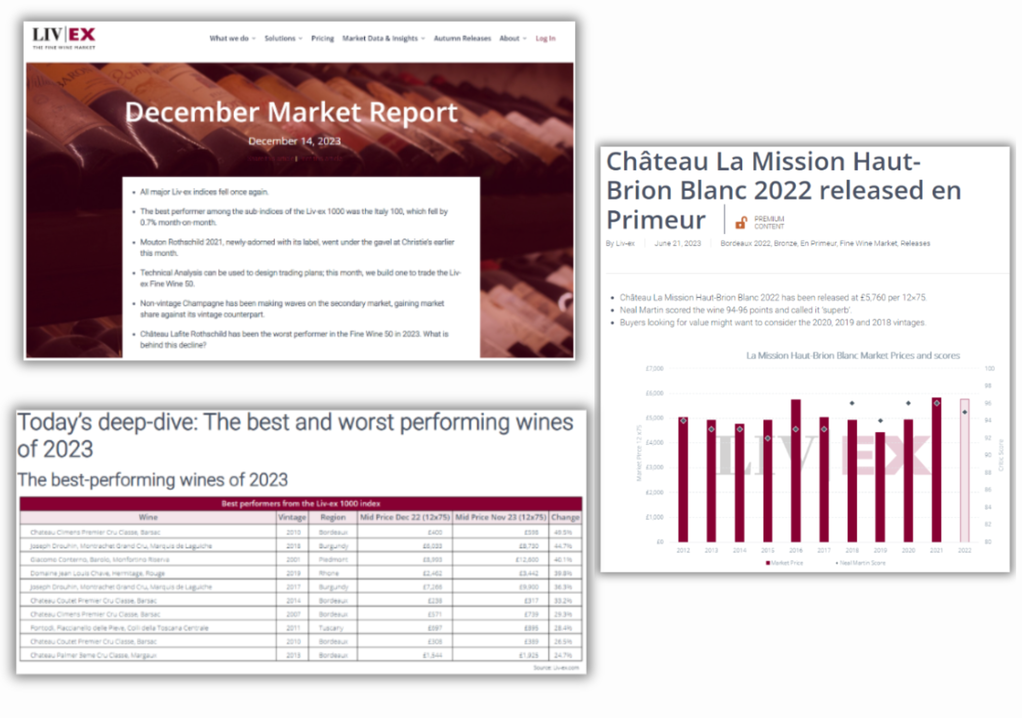 Access the largest pool of gold-standard fine wine data; unique, independent, transaction-based prices direct from the global marketplace, plus auction prices, ABVs, commodity codes, critic scores, and drinking windows. Use our analysis tools and exclusive market insights to inform yourself and your customers.